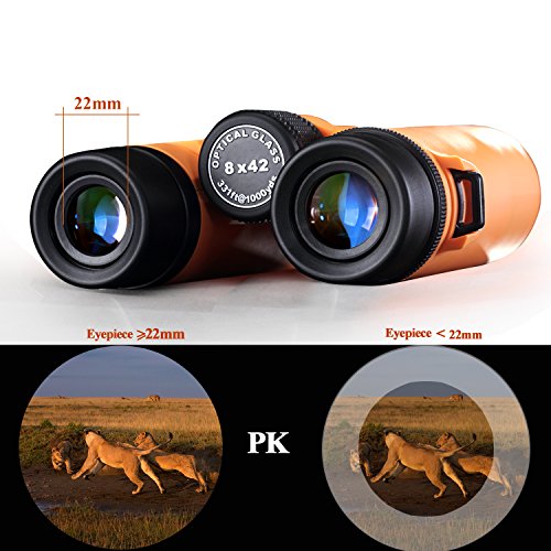 - Visión más clara y brillante; 8X más cerca, 42mm lente grande completamente multi-revestida con el mejor BAK-4 prismas lograr la forma experiencia de visualización; suitablefor juego, paisaje, concierto, luna, caza, camping, etc fauna