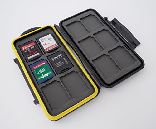 - Caso de la tarjeta de memoria de diseño impermeable resistente Extremadamente fuertes materiales de resina de policarbonato resistentes al agua contiene 12 tarjetas SD Mantiene sus tarjetas de memoria a salvo de la suciedad, arañazos y el agua